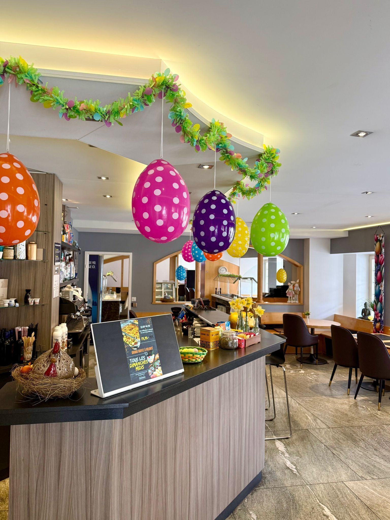 Si vous avez réservé une chambre dans notre hôtel, vous avez accès à notre buffet. Telles que des croissants, petits pains, oeufs, charcuterie et pleins d’autres choses encore.